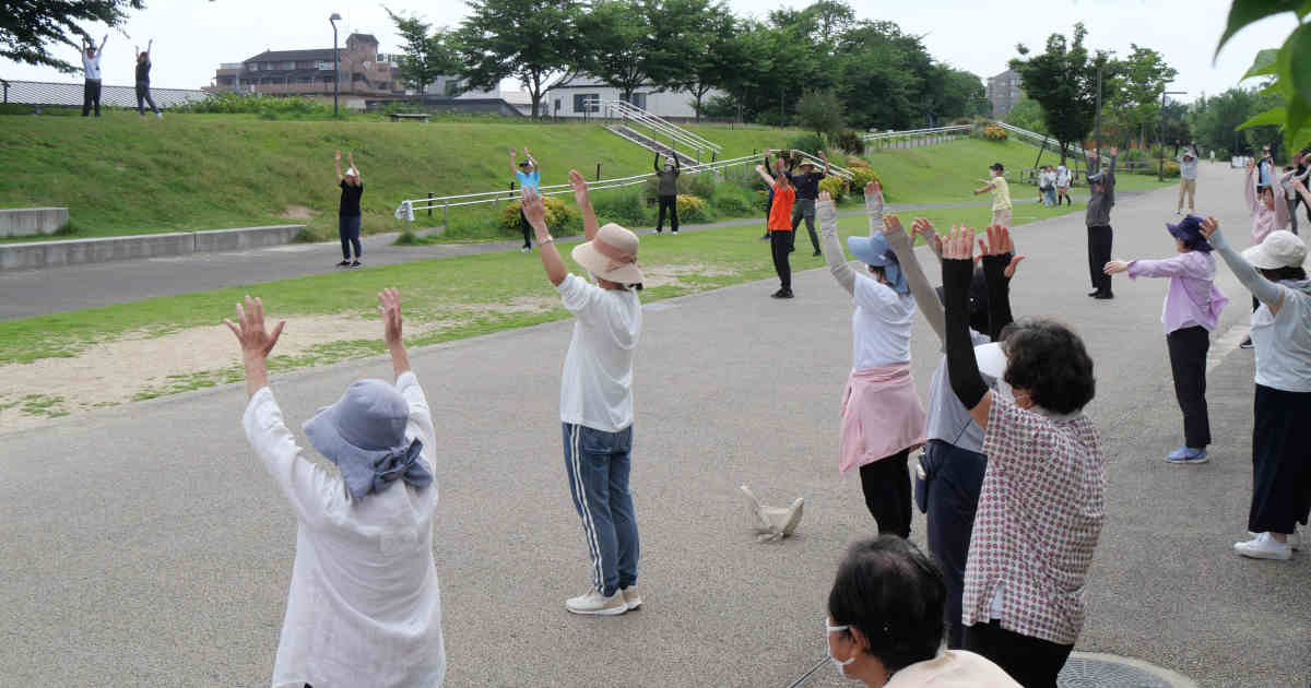 滋賀県草津市の草津川跡地公園de愛ひろば及びai彩ひろばで、ラジオ体操会を開催しております。もちろん、参加無料です。